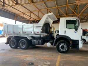 O caminhão basculante é um veículo que traz agilidade às obras, porque com o emprego de um carregadeira, ele pode receber em sua carroceria o material que será retirado daquele espaço.