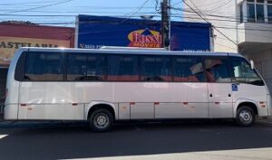 O veículo tem capacidade para transportar 30 passageiros, incluindo um motorista e um auxiliar.