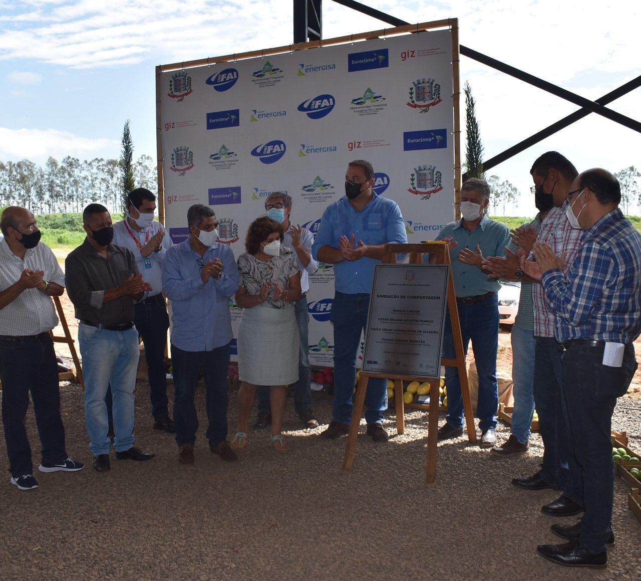 A cerimônia contou com a presença do prefeito Márcio Cardim, Presidente da Mancomunidade Trinacional Fronteriza Río Lempa, Cesar Roldan Agustín Franco; presidente da Câmara Municipal, Paulo César Cervelheira; Prof. Dr. Vagner Amado Belo de Oliveira, coordenador do Projeto Euroclima+ pela UniFAI, secretário de Agricultura, Abastecimento e Meio Ambiente, Thiago Benetão, o coordenador do Projeto Euroclima+ e do Projeto Eficiência Energética pela Prefeitura, William Bachega; o gerente da Mancomunidade Trinacional Fronteriza Río Lempa, Héctor Alonso Aguirre; o coordenador do Projeto Eficiência Energética pela Energisa, Thiago Peres de Oliveira; Prof. Dr. e Pesquisador da UniFAI, José Aparecido Dos Santos, demais vereadores, secretários e agricultores.