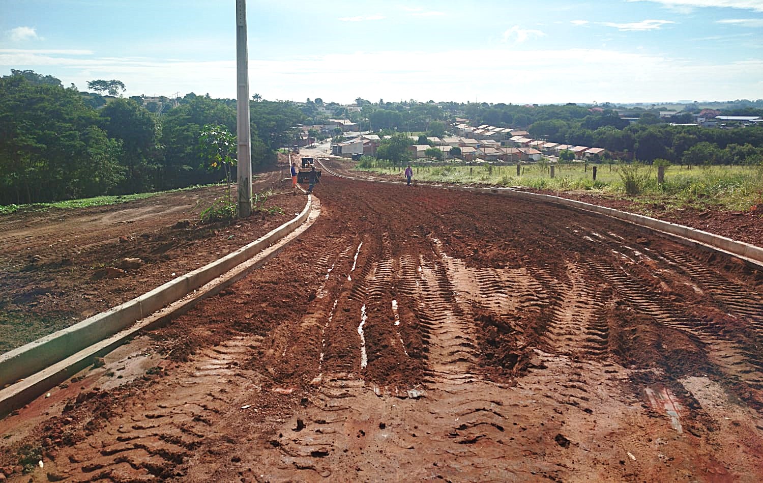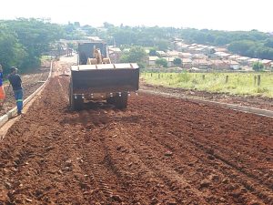 Os serviços incluem terraplanagem, drenagem, implantação de galerias pluviais e aplicação de asfalto (CBUQ). A execução das guias e sarjetas já está concluída e começou a preparação do solo, sub-base e base, para aplicação de asfalto que deve acontecer nos próximos dias, desde que as condições climáticas sejam favoráveis.