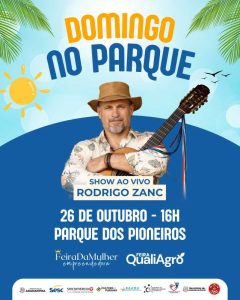 A atração musical será Rodrigo Zanc, cantor, compositor e violeiro. A presença do músico é uma parceria da Secretaria de Cultura e Turismo com o Sesc e Sincomércio.