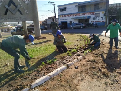 A ação consiste no plantio de mudas e flores. O canteiro divisor de fluxo será construído até a frente do Ganha Tempo. No que já está pronto, foi plantado o cipreste italiano e primavera.