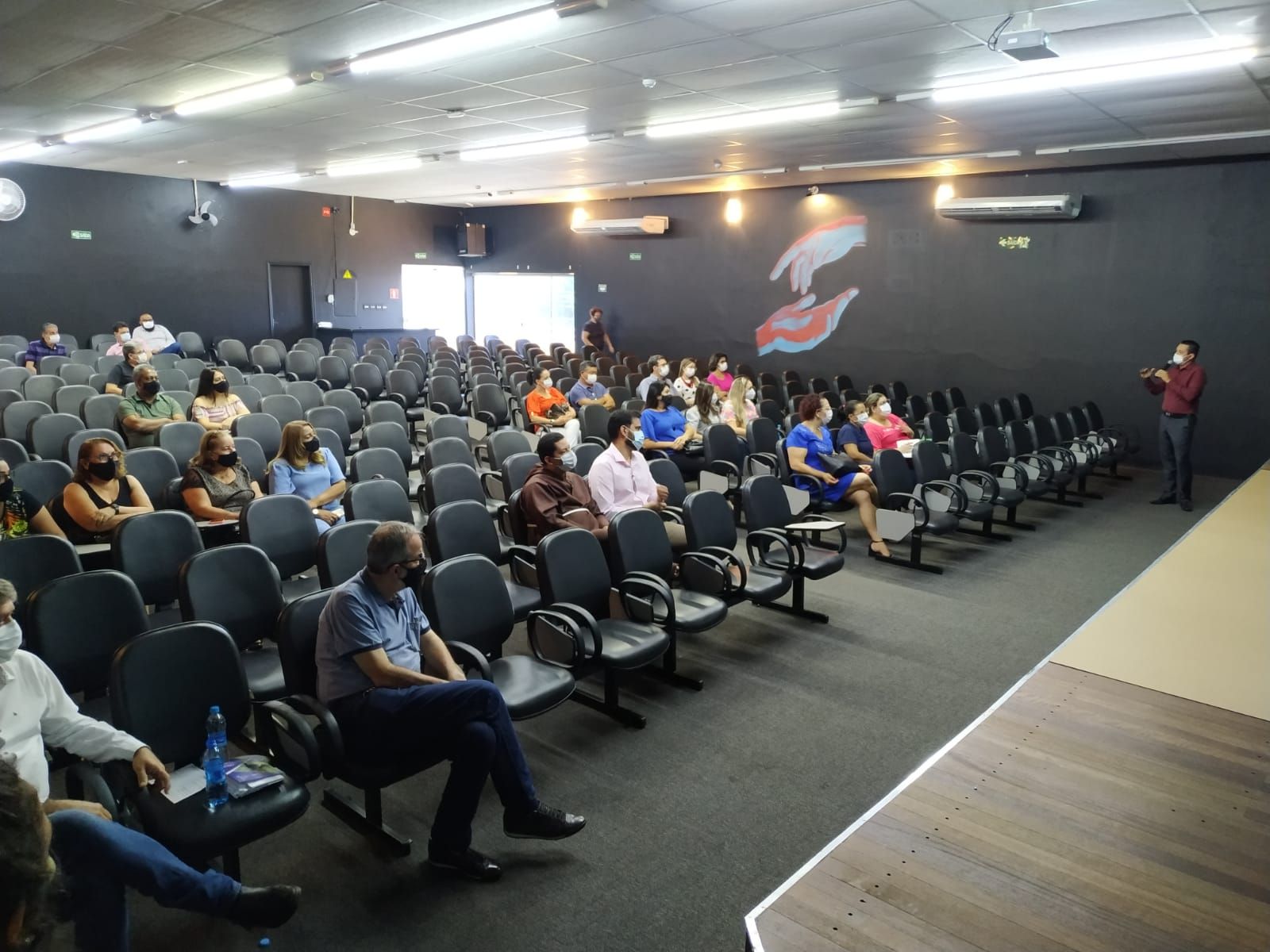 Foto 1: Prefeitos, vices, secretários da saúde da microrregião de Adamantina, representantes da câmara municipal, Unifai e Santa Casa na apresentação do Plano de Trabalho.