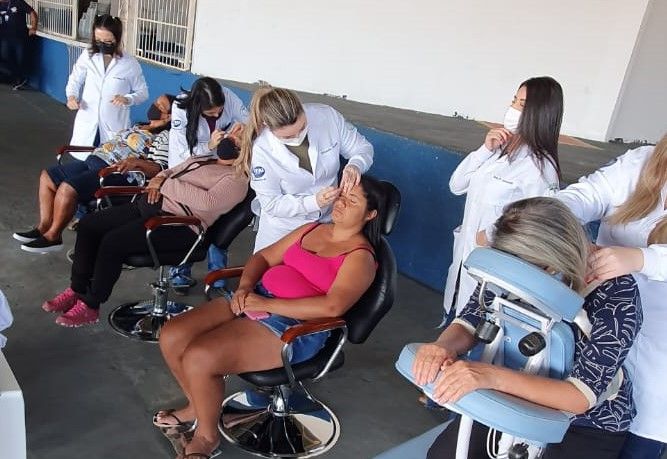 Foram oferecidos serviços de aferição de pressão arterial, teste de glicemia, massagem relaxante, design de sobrancelhas, orientação quanto à classificação de alimentos, entrega de sais de ervas, profilaxia bucal em crianças, dentre outras ações.