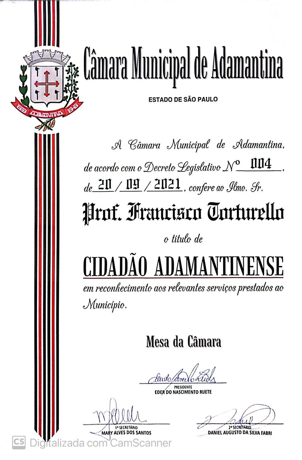 Em cerimônia realizada na noite de sexta-feira (28/03), no Anfiteatro Fernando Paloni, na Biblioteca Pública Municipal Jurema Citeli, o Professor Francisco Torturello (Xykão) recebeu o Título de Cidadão Adamantinense.
