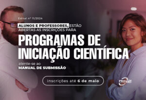 A vigência é de agosto de 2024 a julho de 2025. São três modalidades do programa: PIBIC CNPq, PIBIC FAI e PIBIC Voluntário.