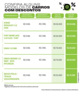 A lista completa dos modelos e versões organizada por ordem alfabética, com os descontos previstos, pode ser conferida aqui. Já a lista organizada pelo valor dos modelos pode ser acessada aqui.