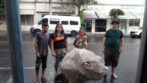 Conhecidos como “catadores”, eles prestam um relevante serviço à sociedade, recolhendo latinhas, caixas de papelão, e todo tipo de material descartado, tanto pelos estabelecimentos comerciais, quanto pelas pessoas em seu transitar pelas ruas.