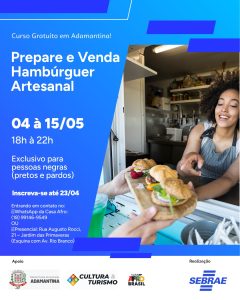 O Sebrae, em parceria com a Casa SP Afro Brasil de Adamantina, promove um curso gratuito e presencial de preparo e comercialização de hambúrguer artesanal, voltado exclusivamente para pessoas negras (pretos e pardos). A iniciativa tem como objetivo incentivar o afroempreendedorismo, promovendo geração de renda, autonomia e novas oportunidades de negócio.