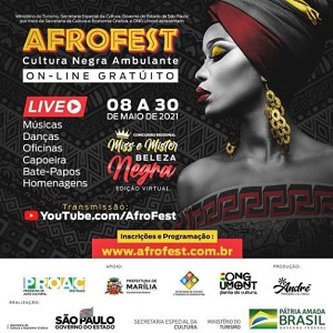 A programação contará com música, dança, oficinas, capoeira, bate-papos e homenagens. A transmissão será pelo endereço youtube.com/AfroFest de 08 a 30 de.