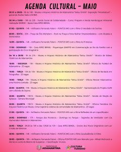 A Prefeitura de Adamantina, por meio da Secretaria de Cultura e Turismo, preparou uma nova agenda cultural. Desta vez, com a programação de maio que tem início nesta sexta-feira.