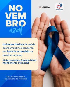 Nesta quinta-feira (13), todas as unidades básicas de saúde de Adamantina atenderão até às 20h. O objetivo é disponibilizar atendimento aos homens em meio ao novembro azul.