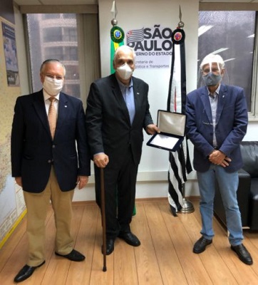 O Secretário Estadual de Logística e Transportes, João Octaviano Machado Neto, recebeu na tarde desta quinta-feira (4/mar), uma placa de homenagem, do Instituto de Engenharia de São Paulo, pelos bons serviços prestados à engenharia e ao Brasil.