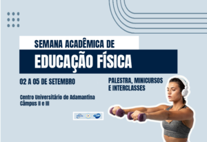 Em comemoração ao Dia do Educador Físico, celebrado em 1º de setembro, a Semana Acadêmica de Educação Física reunirá palestra e minicursos entre os dias 2 e 5 de setembro, com direito a Jogos Interclasses no último dia do evento.