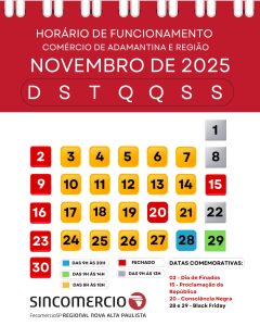 SINCOMÉRCIO divulga calendário de novembro para Adamantina e região