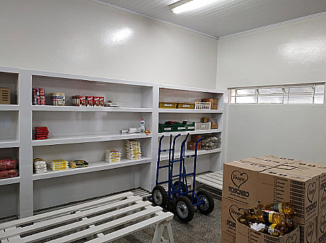 27/01/2020 21h14 A Secretaria de Educação realizou no início deste ano melhorias no prédio do departamento de merenda escolar. Foram realizadas reformas nas prateleiras do