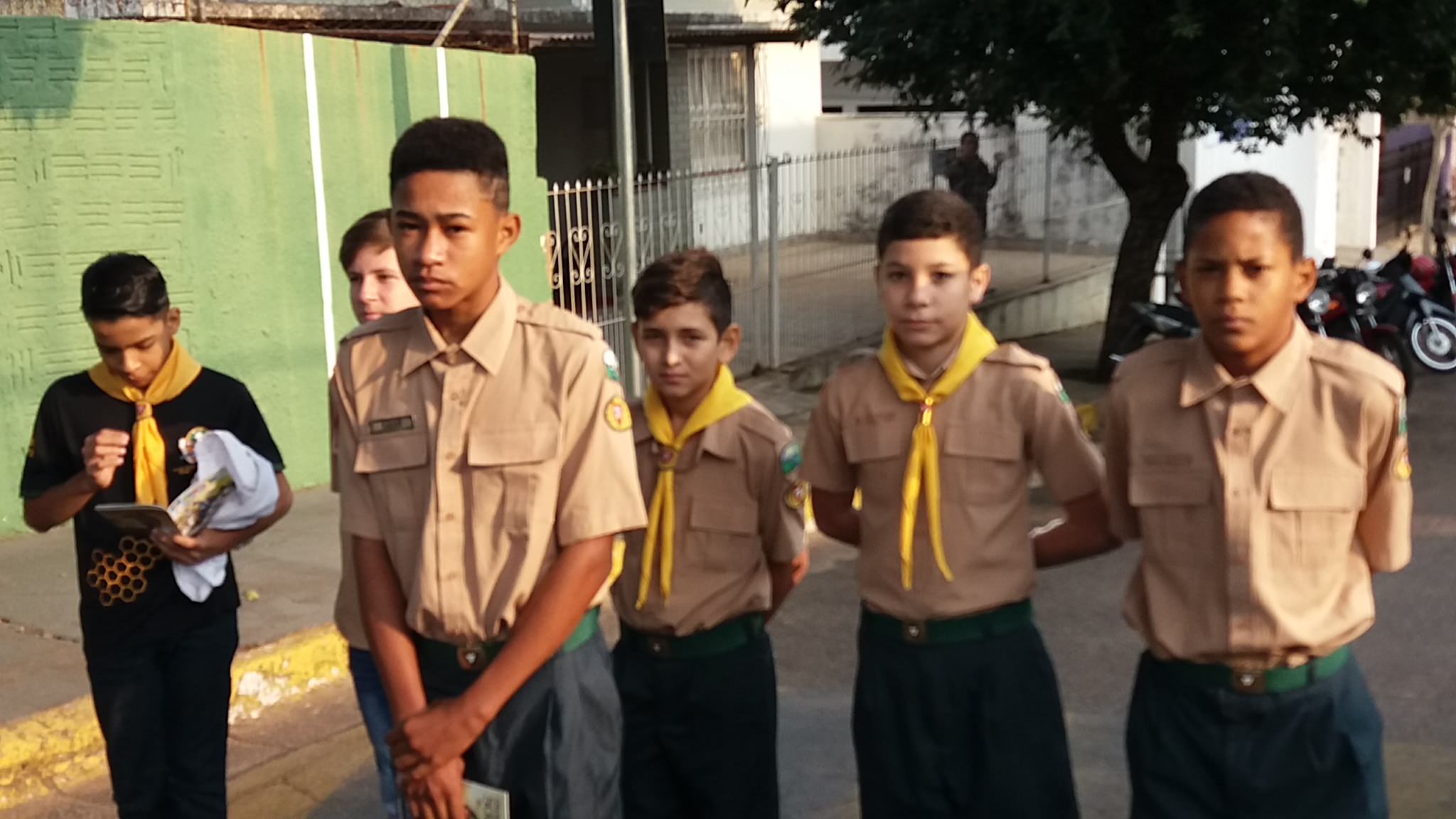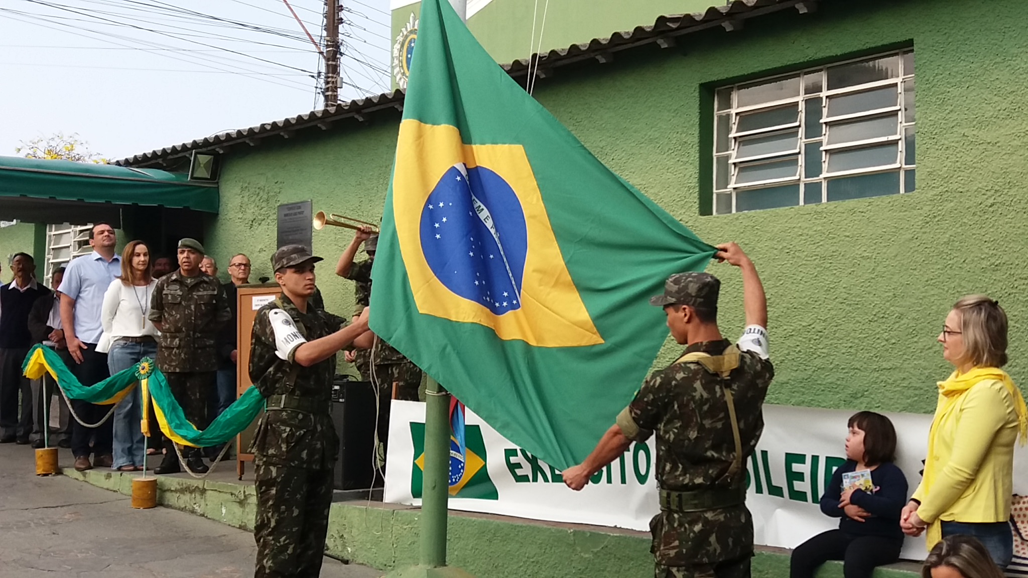 Após a apresentação da Tropa, foi feito o hasteamento da Bandeira, e executado o hino Nacional.