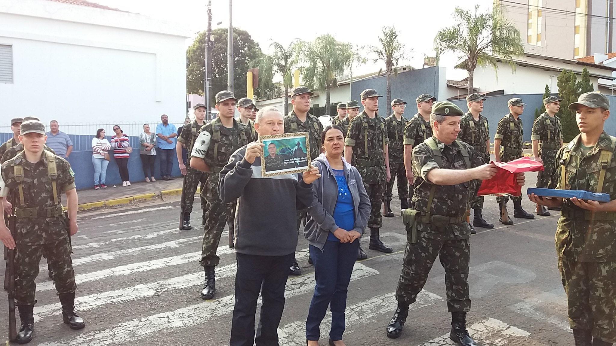 Um momento de emoção marcou a data festiva do “Dia do Soldado” , o TG 02-080, através do chefe de Instrução subtenente Brufatto, fez uma homenagem póstuma ao Atirador 50, Wilian Moreira da Silva, falecido em 21/06/2019, entregando ao seus pais o Sr. Juvenal Ribeiro da Silva e sua esposa Sra. Rosália Moreira da Silva uma fotomontagem com a imagem do seu filho quando soldado.