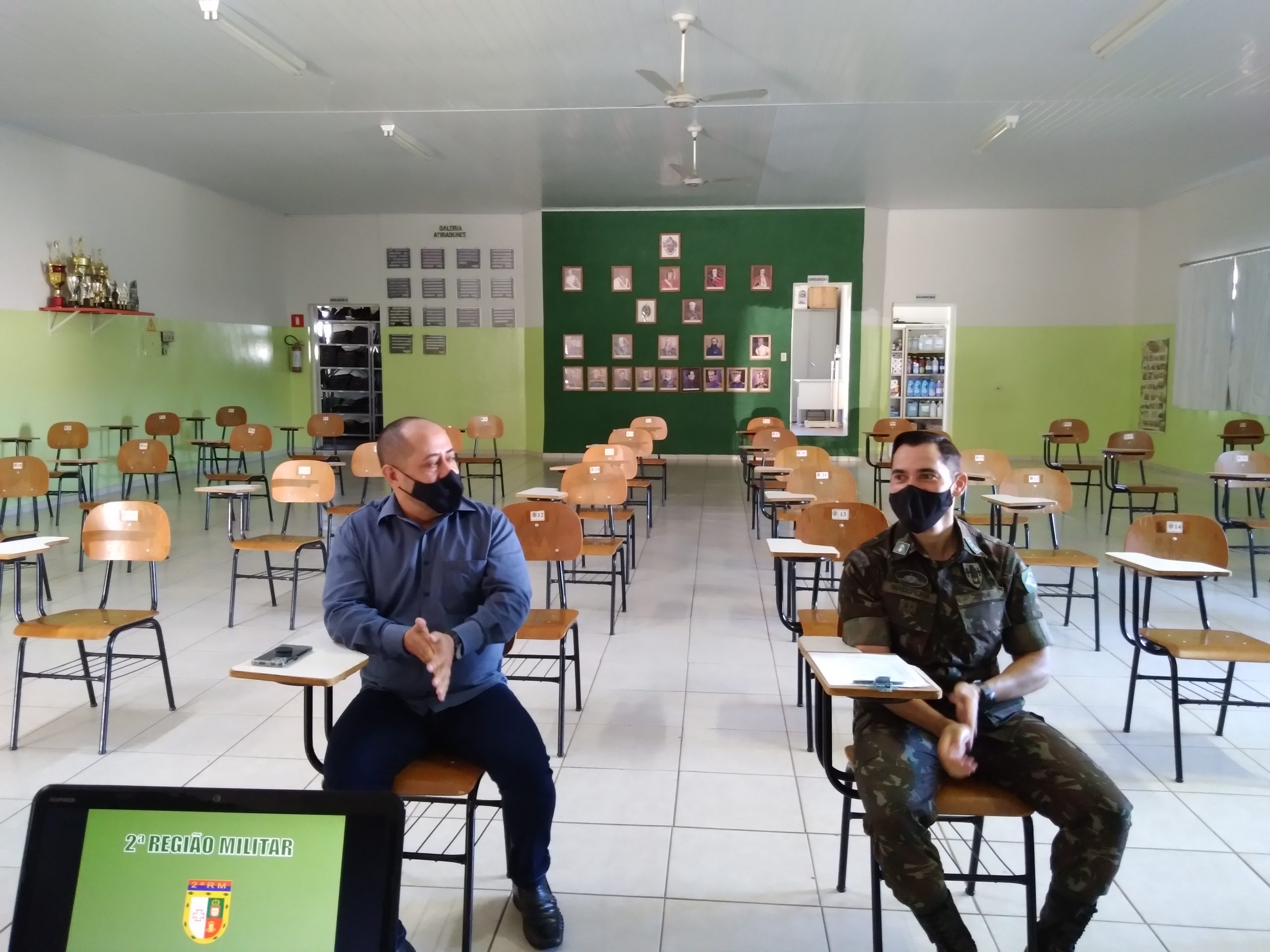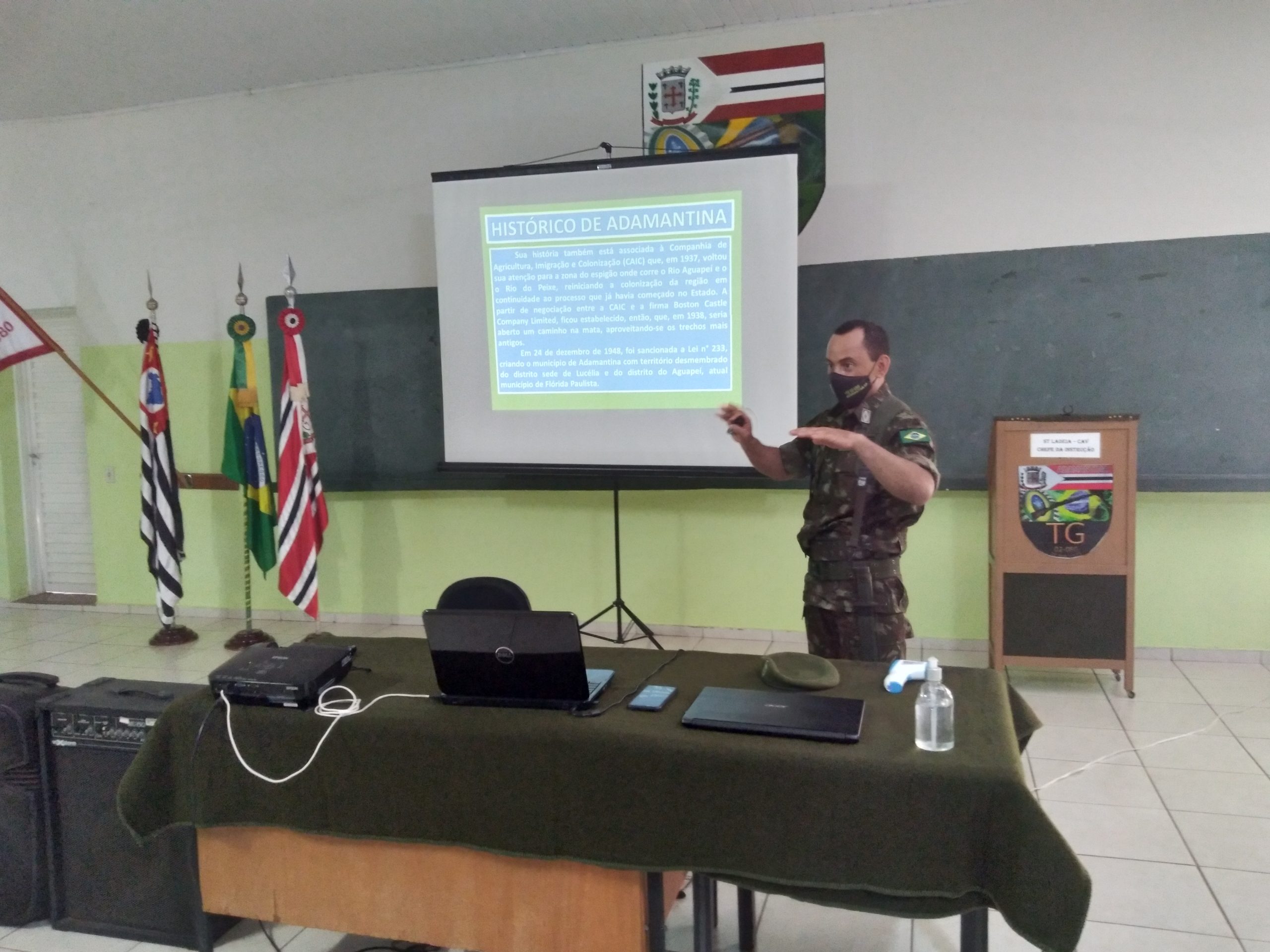 O Tiro de Guerra de Adamantina (TG 02-080), recebeu na manhã de ontem (20/10), a visita de uma equipe da 2ª Região Militar comandada pelo Major de Artilharia Mário Henrique Madureira, Chefe da Seção de Tiros de Guerra, do 2º Sargento Claudomir Severino da Silva, e do 3º Sargento Peterson dos Santos Pereira Leite, auxiliares da Seção de Tiros de Guerra.