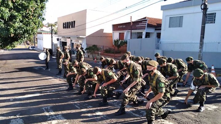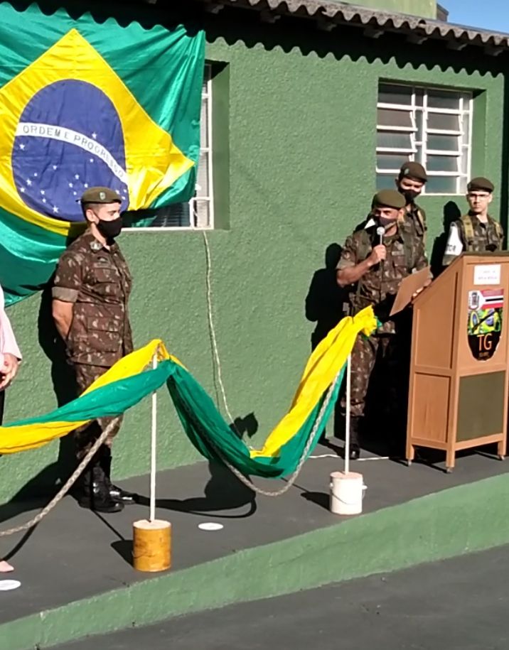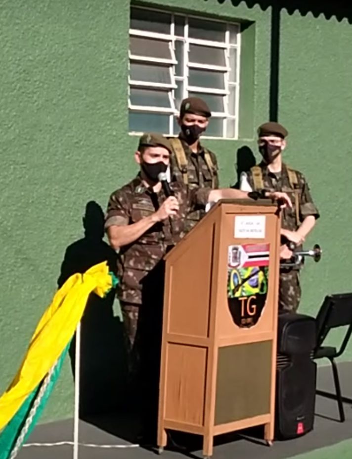 Encerrando a solenidade a Tropa desfilou em continência ao chefe da Seção de Tiros de Guerra da 2ª Região Militar entoando a canção “Fibra de Heróis”, letra de Teófilo de Barros Filho e Música de Guerra Peixe.