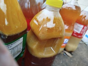 A orientação é deixar o óleo esfriar após o uso e armazená-lo em garrafas PET bem vedadas. Quando o recipiente estiver cheio, o morador deve levá-lo até o ponto de coleta.