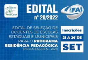 Conforme o edital nº 20/2022, a seleção para atuação dos professores como preceptores no Residência Pedagógica/UniFAI terá duração de até 18 meses.