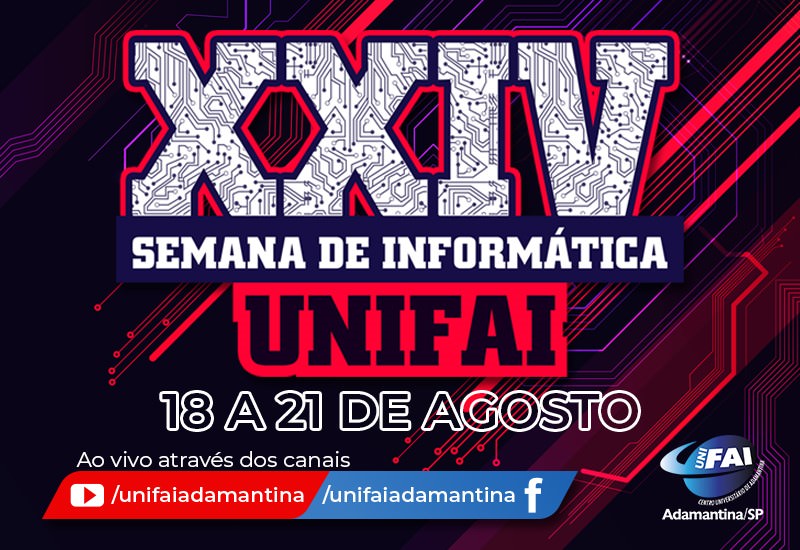 De 18 a 21 de agosto, os cursos de Ciência da Computação e Tecnologia em Análise e Desenvolvimento de Sistemas (TADS) irão promover a XXIV Semana de Informática On-line do Centro Universitário de Adamantina (UniFAI), composta por palestras, workshops e mesa redonda.