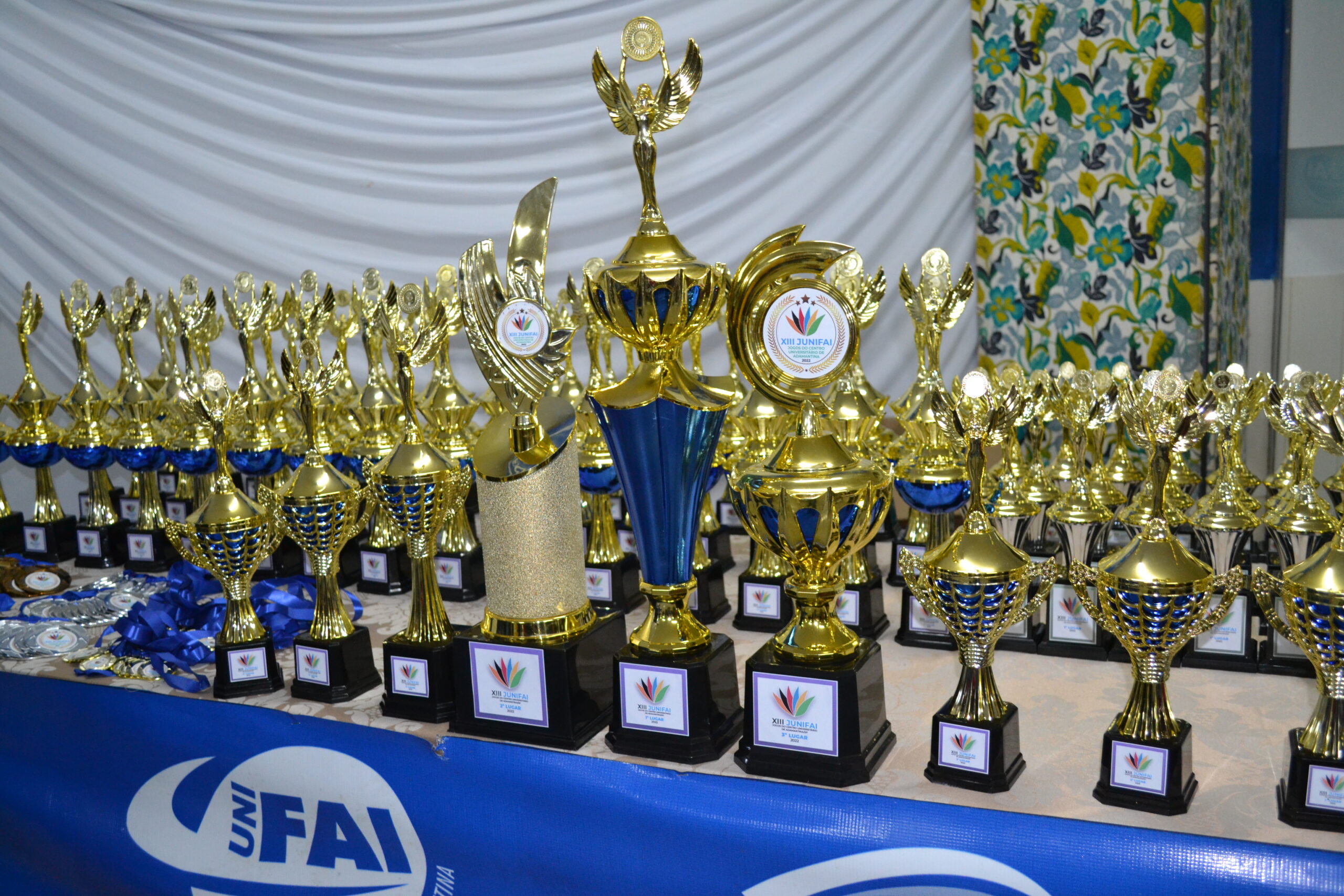 Foto_troféus: Troféus e medalhas entregues aos primeiros colocados do JUNIFAI 2022