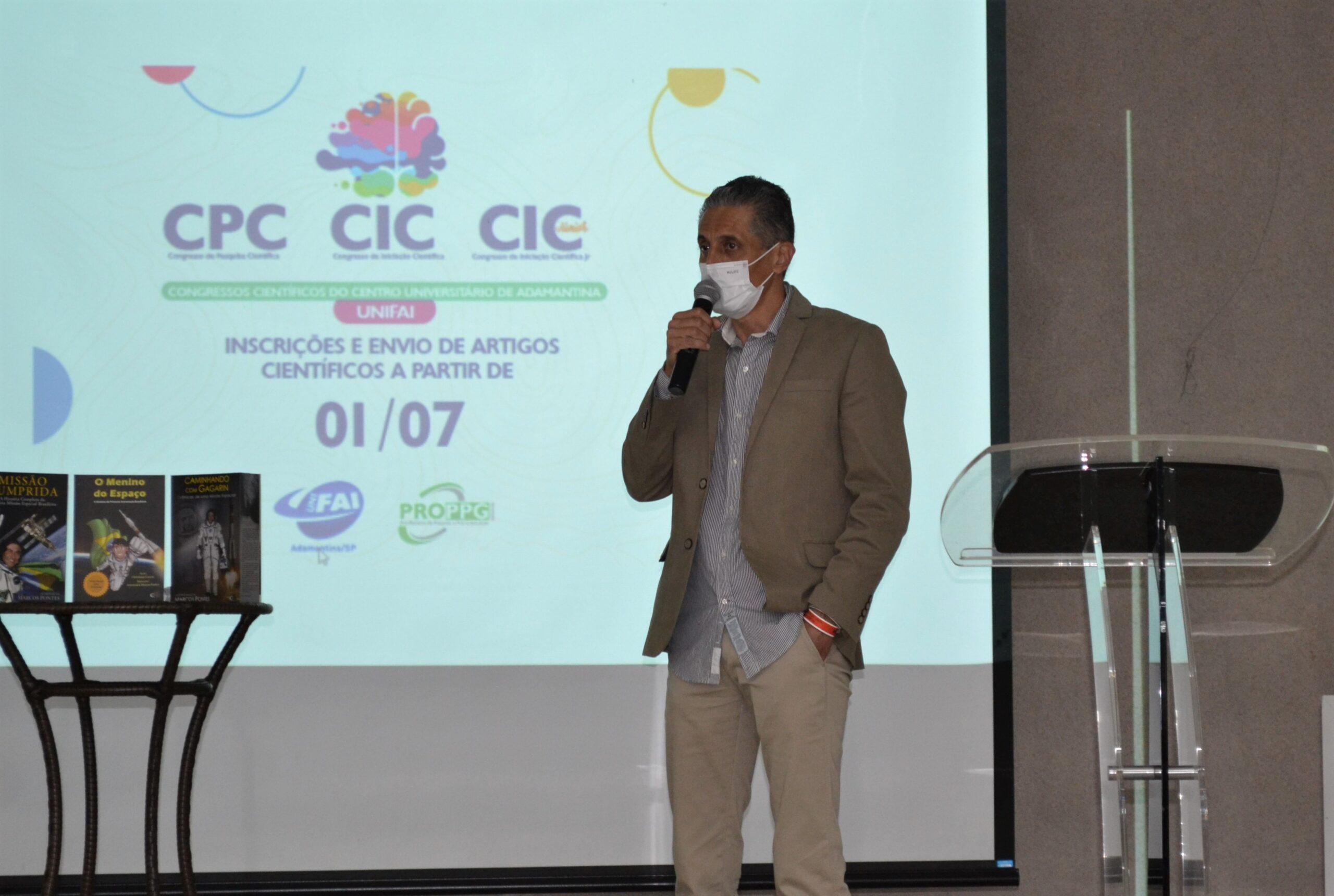 Em sua fala, o reitor agradeceu o empenho coletivo frente à gestão: “Gostaria de cumprimentar nossa mesa diretiva e parabenizar a equipe organizadora do evento, sempre com muito comprometimento e sucesso. Parabéns às pró-reitoras, especificamente neste evento liderada pela professora Márcia. Celebramos o pré-lançamento do 16° Congresso de Iniciação Científica da UniFAI, uma proposta inovadora, onde teremos uma diversidade de eventos como palestras, mesas-redondas, cursos, minicursos, tudo de forma híbrida para que mais pessoas participem”.