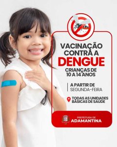 A vacina contra dengue destinada ao público que tem entre 10 e 14 anos de idade continua disponível em todas as unidades básicas de saúde das 8h às 16h. O município recebeu 710 doses e até agora foram aplicadas 42 doses nas crianças de 10 e 11 anos e 41 doses no público entre 12 e 14 anos. O esquema vacinal é de duas doses, com intervalo de três meses entre as doses.